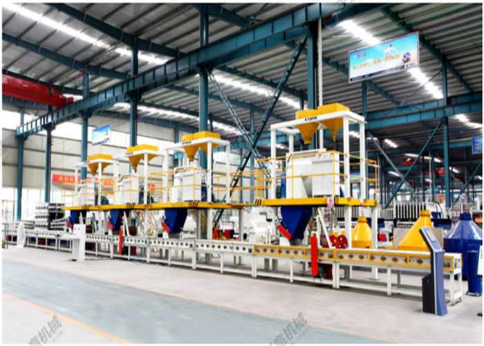 該生產線可生產各種產品,如FSB建筑保溫免拆模板、EPC建筑保溫免拆模板、夾心保溫墻板等,生產線自動化程度高,采用PLC控制系統保證了生產線的穩定性,節省人工,生產效率高,設備配有計量系統,結合產品的材料性能使料漿攪拌均勻,能夠很好的將產品復合在一起,從而提高了產品的質量。
