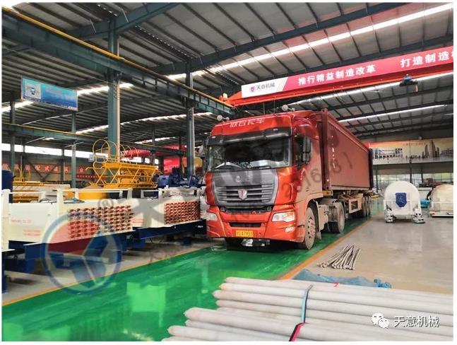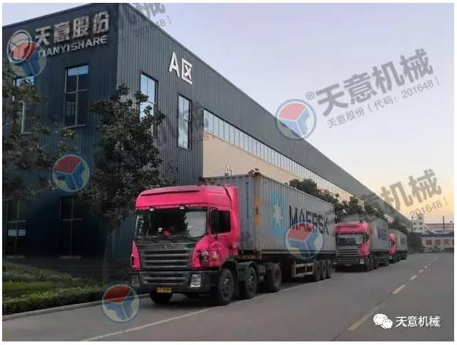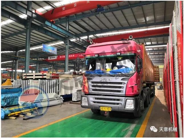 參展多,人氣旺,天意機械設備銷售情況持續向好,PC裝備、墻板裝備、保溫裝飾一體化板生產線等事業部在原有生產任務繁重的情況下,又陸續接到來自海外地區一批緊急求購訂單,隨著發貨量不斷增大,發貨車排起長龍,天意機械的貨物發運系統面臨著很大的挑戰。