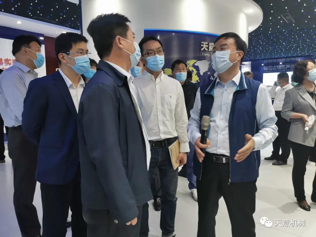5月13號上午,由省貿促會二級巡視員曲惠民帶領調研組蒞臨天意機械,就我司對外開放工作進行調研。市貿促會副會長李正同 、市委改革專職 副主任汪潔、市委改革辦產業集聚區管委會副主任劉嘉、區委常委、區委辦公室主任龔標、區委常委副區長鐘海濤等領導陪同調研。天意機械董事長劉洪彬就與德國合資的特博特公司、國際合作及科技創新情況向省調研組一行領導進行匯報。 調研組對我司對外開放工作給予充分肯定,并希望天意機械進一步加快培育國際競爭新優勢,深度融入全球產業鏈、價值鏈,使公司對外開放工作實現新突破。